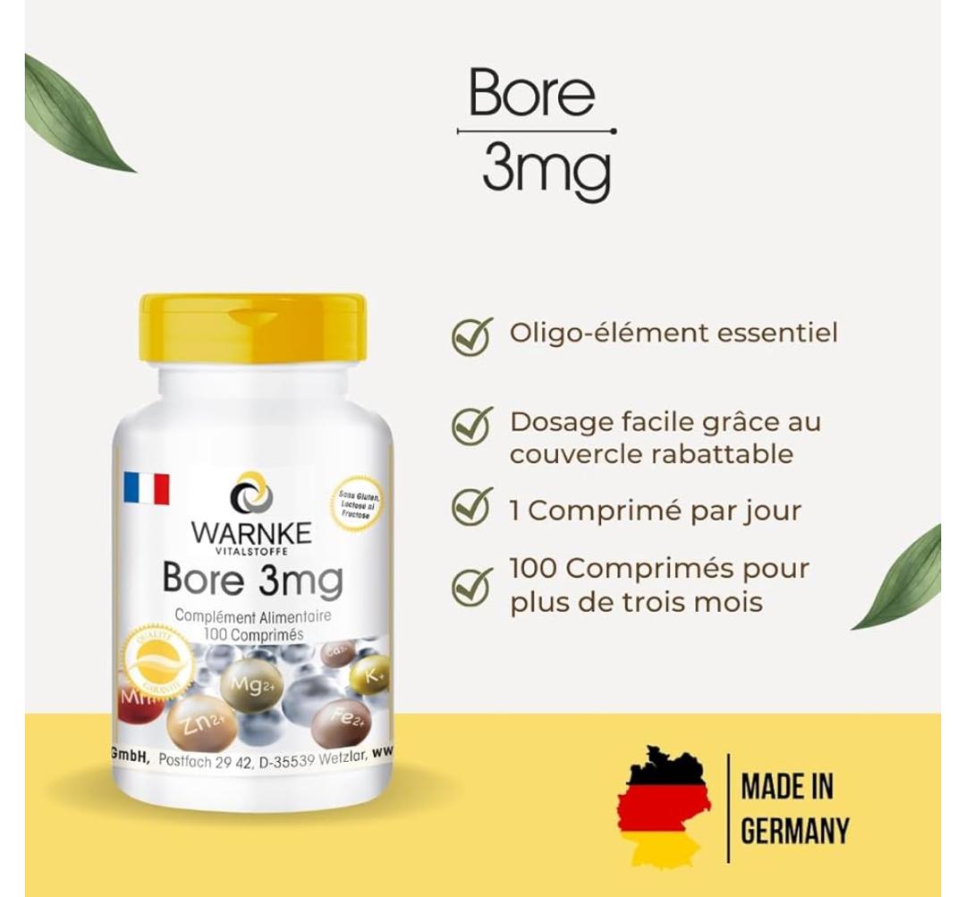 • Boron (bioavailable form) : Optimal dosage for a safe daily intake.