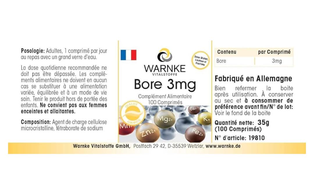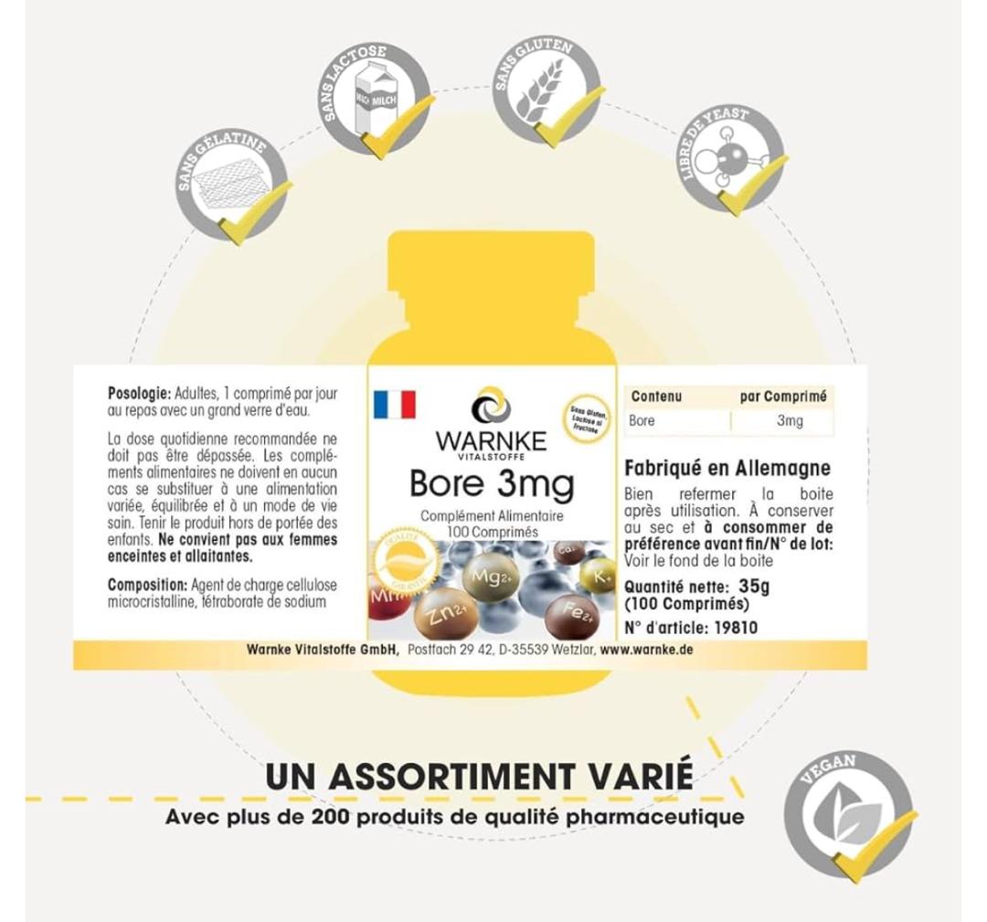• Bore (forme biodisponible) : Dosage optimal pour un apport quotidien sécurisé.